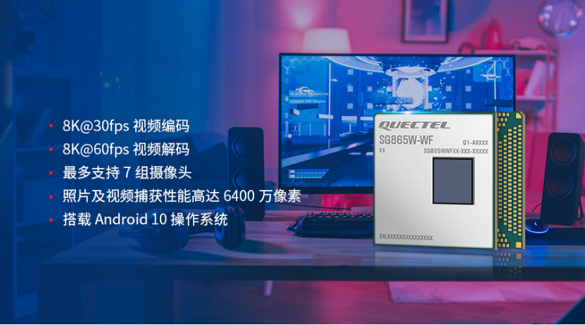 同时,SG865W-WF 集成了LCM、摄像头、触摸屏、I2S、PCIe、UART、USB、I2C 以及 SPI等丰富的外围接口,极大地拓展了其在物联网领域的应用范围,可广泛应用于视频会议、直播、游戏、边缘计算、机器人、无人机、AR/VR 、智慧零售、安防等终端产品和行业。