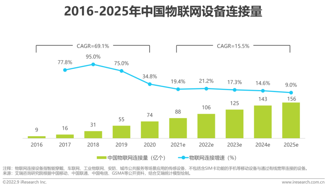 根据艾瑞咨询测算,中国物联网连接量将从2019年的55亿个增长至2025年的156亿个。物联网感知数据量激增,数据类型愈发复杂多样。随着智慧城市、自动驾驶、工业互联网等应用的落地,海量的终端设备实时产生数据,集中式云计算在带宽负载、网络延时、数据管理成本等方面将愈发显得捉襟见肘,难以适应数据频繁交互的需求,边缘侧的价值将进一步凸显。