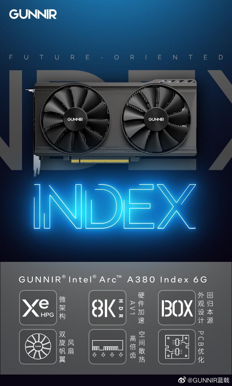 参数方面,这款显卡搭载英特尔锐炫 A380 GPU,8 个 Xe 核心,GPU 频率为 2000MHz,6GB 96bit GDDR6 显存,接口包括 3 个 DP+1 个 HDMI,75W TBP,无需外接供电。