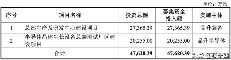通过IPO,晶升股份拟募资4.76亿元,用于总部生产及研发中心建设项目、半导体晶体生长设备总装测试厂区建设项目。