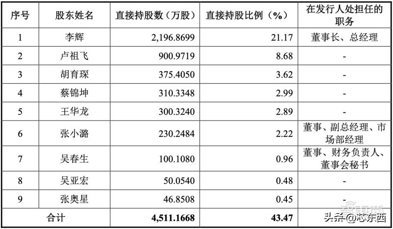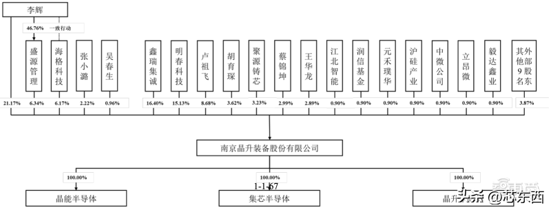 IPO发行前,晶升股份的控股股东、实际控制人为其董事长、总经理李辉。李辉直接持股21.17%,通过员工持股平台盛源管理以及一致行动人海格科技合计控制晶升股份33.69%的股份。