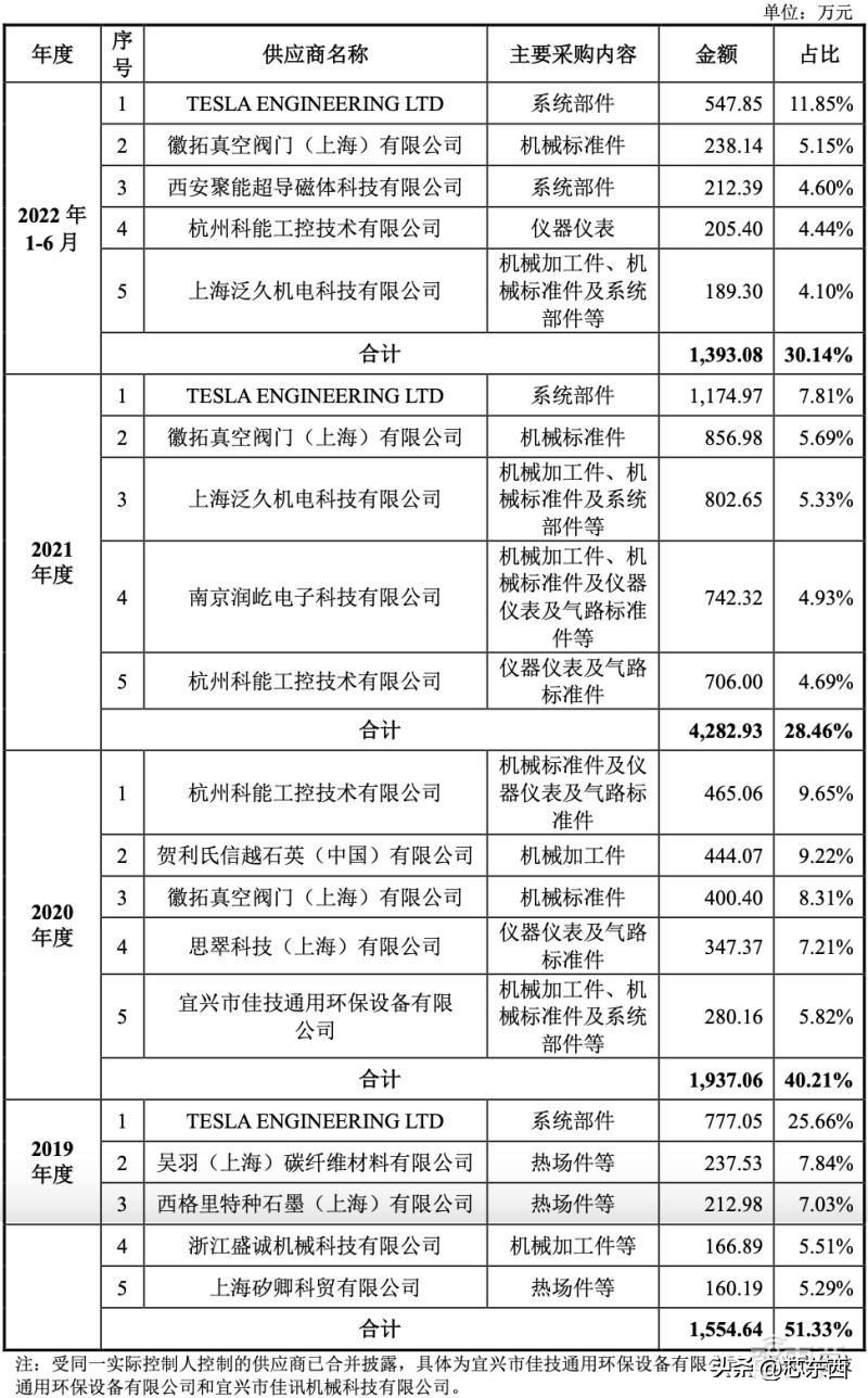 2019年、2020年、2021年、2022年1~6月,晶升股份前五大客户主营业务收入合计占比分别为97.21%、94.22%、95.44%、97.69%,主要客户集中度相对较高。