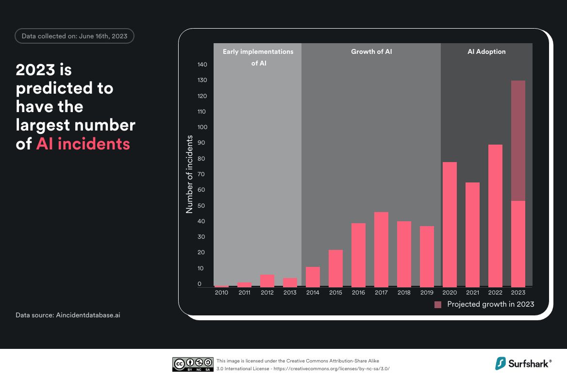 日前网络安全公司 Surfshark 发布关于“AI incident”(AI 事故,也称 AI 翻车)的一份报告。报告列举了 2010 年以来由 AI 所导致的事故情况,并对 AI 事故的详细内容作出分析。