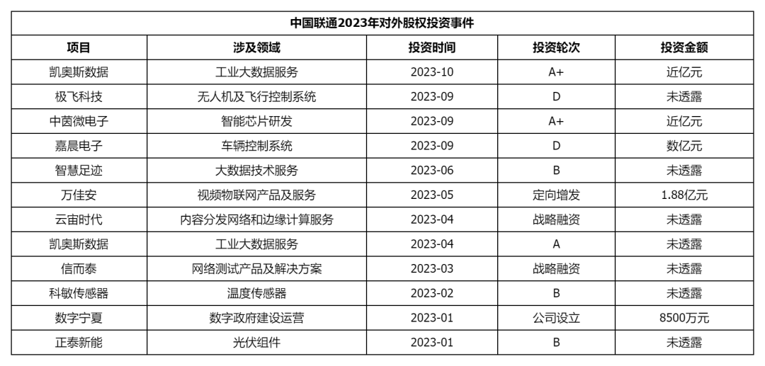 工业大数据服务项目凯奥斯数据,联通参与了其两轮次融资,投资金额在亿元级别;