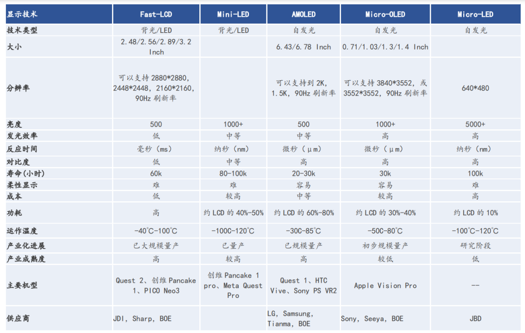 此外,Fast-LCD、Mini-LED、AMOLED、Micro-LED等也占有相应的份额。供应商来自JDI、Sharp、京东方、LG、三星、天马、Sony、JBD等等…..
