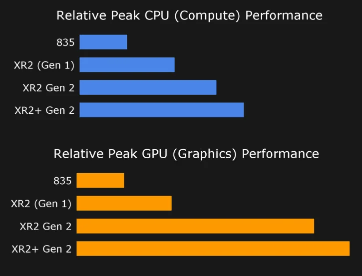 Meta quest系列、Pico 4 Pro、HTC XR Elite均采用高通骁龙为XR设备设计的专用芯片。