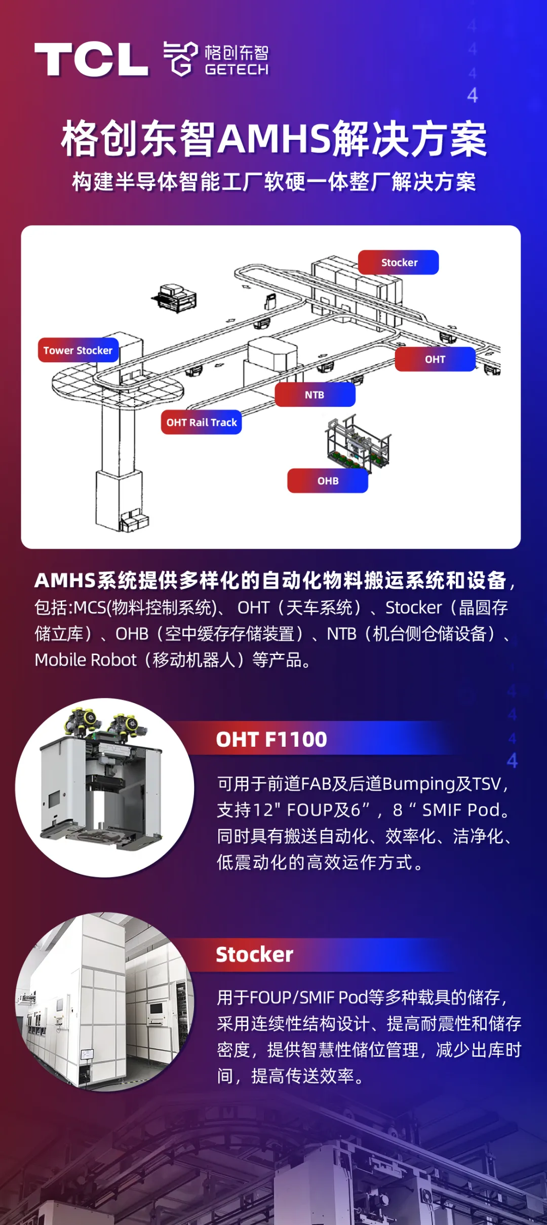 AMHS是半导体工厂极为重要的生产辅助系统,涵盖OHT、Stocker等核心硬件设备,并由MCS、RTD等软件协同运作,在半导体材料、晶圆制造与封装测试环节均有应用,对于提升半导体产线的产能、稼动率、良率等核心生产指标至关重要。 近年来,中国半导体产业的蓬勃发展,越来越多的晶圆厂以及硅片厂、封测厂的自动化改造需求出现,对AMHS系统提出了更高的要求。AMHS是与半导体CIM软件结合最为紧密的自动化硬件,格创东智将依托既有优势,持续提升在AMHS领域的核心竞争力,打造软硬融合的整厂解决方案,构建半导体工厂生产和物流的闭环能力。作为源自半导体制造业的工业智能解决方案提供商,格创东智始终坚定实施软硬融合战略,深化IT与OT融合,下沉工业现场,充分利用AI、云计算、大数据等新兴技术优势,以软件和算法驱动装备和边缘控制硬件智能化升级,加速工业智能创新变革,帮助半导体工厂打造群控、集控能力,实现全要素连接、透明化生产执行、自动化设备管理。目前,格创东智已经为半导体客户打造多个智能工厂,在半导体CIM系统、自动化等领域积累了大量项目实施经验。