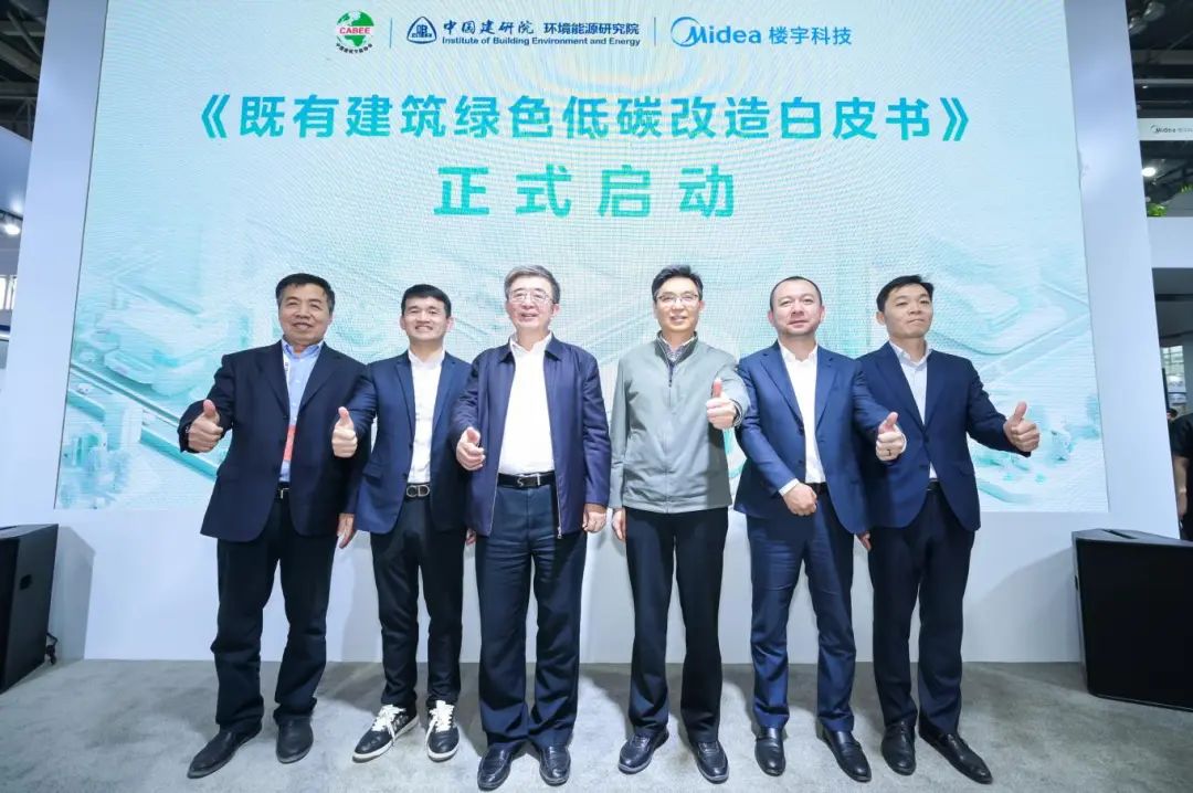 在2024中国制冷展现场,美的楼宇科技,携全新建筑节能更新解决方案精彩亮相,并联合中国建筑节能协会、中国建筑科学研究院建筑环境与能源研究院共同启动《既有建筑绿色低碳改造白皮书》制订工作,为我国既有建筑节能改造领域发展提供范本。
