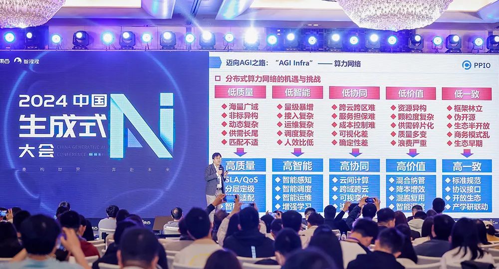 基于上述思考,他认为要搭建AGI Infra,分布式算力网络是云边端协同计算基础设施的收敛形态。PPIO推出的“派欧算力云”覆盖全国数千个分布式算力节点,通过智能调度和推理加速技术,可以实现算力性价比提升数十倍,推理成本大幅度降低。