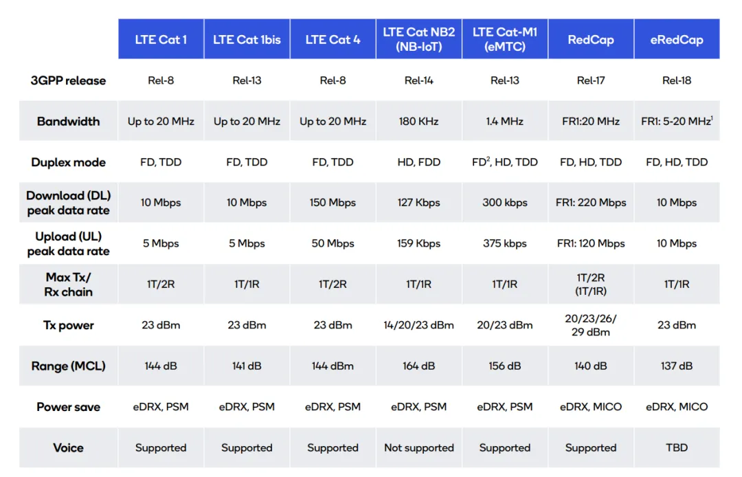 即使如此,LTE Cat 1bis 调制解调器的功耗现在与 LTE-M 调制解调器相当或更好,见下表。