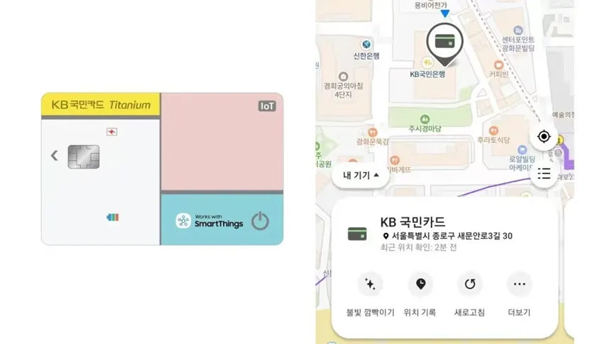 新的三星物联网信用卡集成了SmartThings Find,使用户能够在丢失钱包或忘记将信用卡放在哪里的情况下,定位自己信用卡的位置。通过SmartThings Find,可以追踪智能手机通过BLE与信用卡连接的最后位置,并显示过去七天的位置记录,对于经常遗忘随身物品的人们来说是一个不错的“利器”。