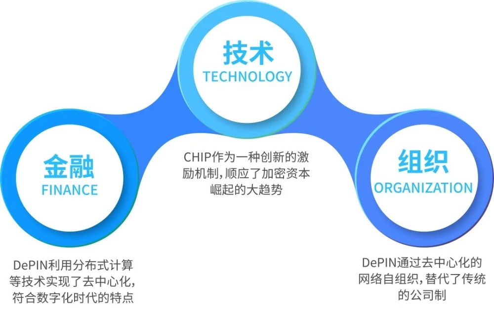 在技术革新、金融创新和组织治理方式演进的大潮中,DePIN + CHIP模式应运而生。它是这三大历史演进趋势交汇融合的产物,代表了数字经济时代的一种崭新范式。