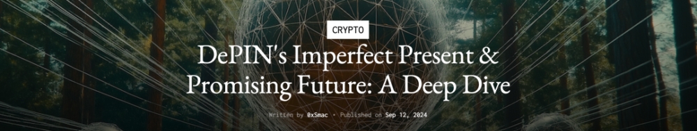 在9月12日,来自投资机构Compound的两位作者Knower和Smac,撰写并发布了他们最新的研究报告DePIN’s Imperfect Present & Promising Future: A Deep Dive,对DePIN的现状和未来进行了深入的分析。