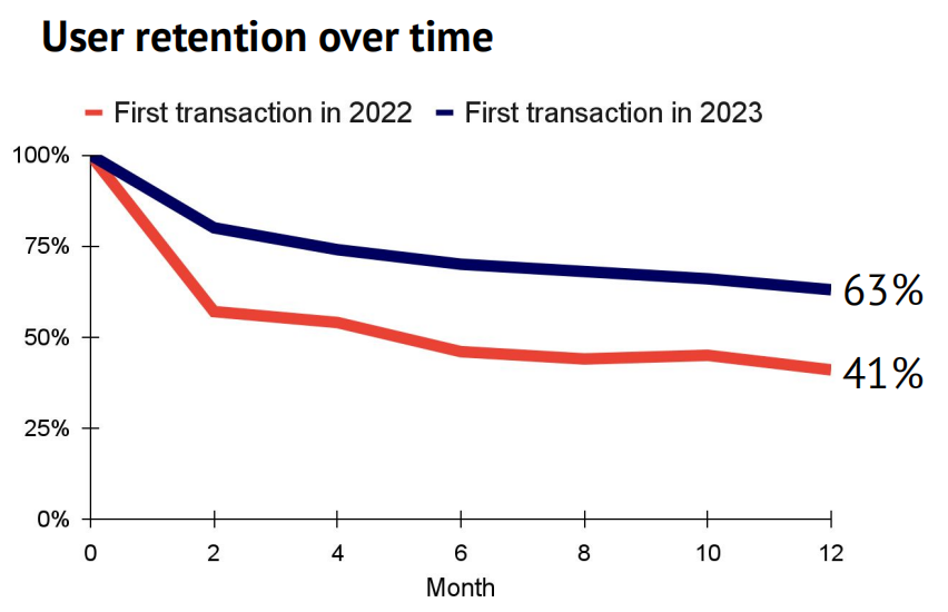 来自美国企业金融科技公司Ramp的新数据显示,从2022年到2023年,客户支出和留存率都有显著提高。