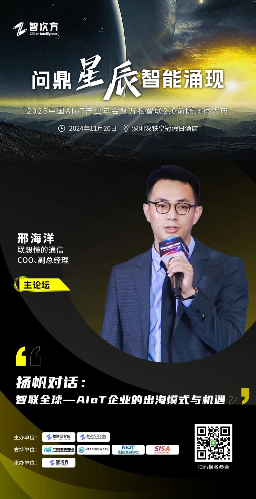 值得一提的是,联想懂的通信 COO、副总经理 邢海洋将重磅出席,参与扬帆对话《智联全球—AIoT企业的出海模式与机遇》,共同探讨AIoT企业在出海过程中面临的多重挑战、前景与趋势,分享企业在全球市场拓展中的新战略与新模式,为AIoT企业实现业务增长和价值提升提供新的思路与解决方案。