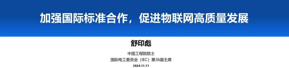 中国工程院院士、中国电机工程学会理事长、国际电工委员会IEC第36届主席舒印彪,以《加强国际标准合作,促进物联网高质量发展》为题,分享物联网标准化的前沿视角;