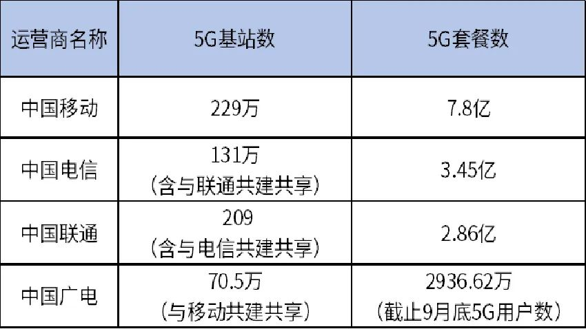 中国移动在5G基础网络设施建设、5G用户规模、5G套餐数等上以绝对的优势遥遥领先,“移”路跑出中国速度。中国联通和中国电信通过共建共享,用最短时间建成了全球首个、规模最大、网速最快的5G SA共建共享网络,驱动生产方式、生活方式和服务体系不断升级,推动经济社会各领域数字化转型的不断深化。中国广电尽管起步较晚,但凭借其在700MHz频段5G基站建设上的快速推进,以及在“通信+内容”融合服务上的创新尝试,正逐步构建起自己独特的竞争优势。