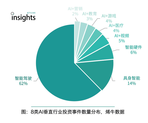 据统计,国内AI行业融资总金额增加,但事件数同比下降,反应了机构更加谨慎的理性态度;同时马太效应越发明显,资本更青睐热点赛道和高成熟度赛道。