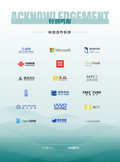 该报告也得到了产学研领域众多机构的支持,不仅在趋势提名上众智,在具体技术方面,也分享了精彩判断和评论。这让报告有了更广的视角基础,以及更深的产业生态基础,特此鸣谢——
