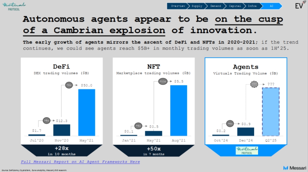 进一步分析,报告认为智能代理有可能复制DeFi和NFT在过去几年的增长模式,如上图所示。