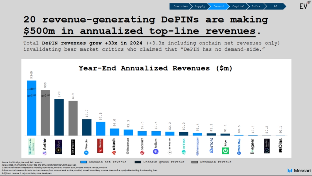 在2024年,DePIN与AI代理相结合的项目是全球表现最好的资产类别,有五个项目的全年回报率超过1000%。