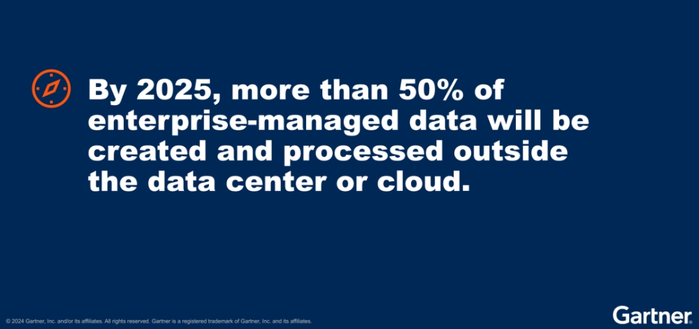 知名研究机构Gartner也给出了令人瞩目的判断:到2025年,超过50%的企业管理数据将在数据中心或云端之外被创建和处理。