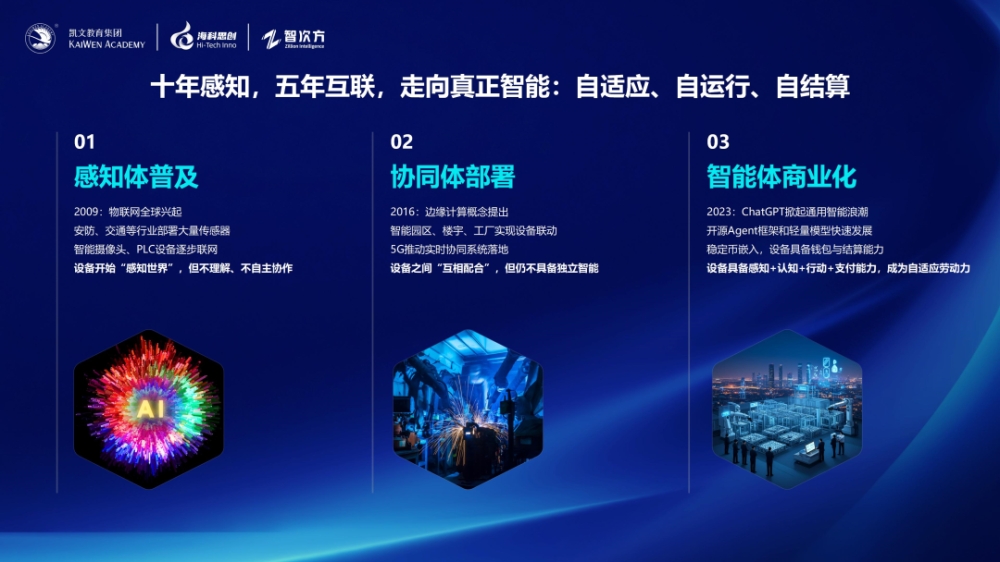 所以我们说:十年感知,是设备看到了世界;五年互联,是设备开始协同运作;而今天,我们走向真正的智能体时代:自适应、自运行、自结算。