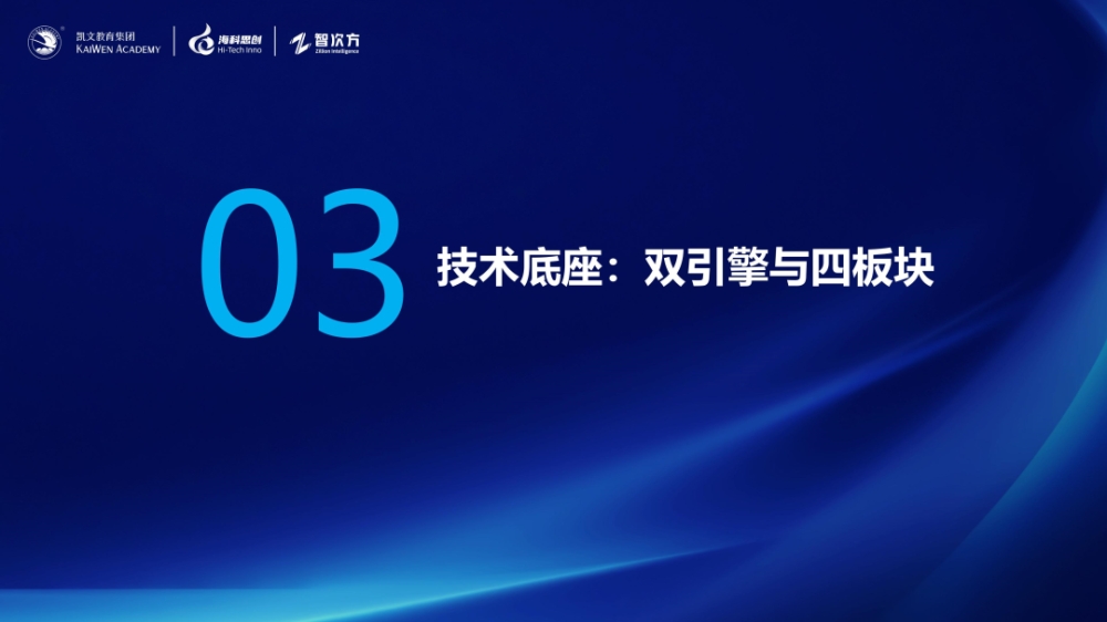 这两页PPT是我们今天的核心内容之一:技术架构:四板块+双引擎。
