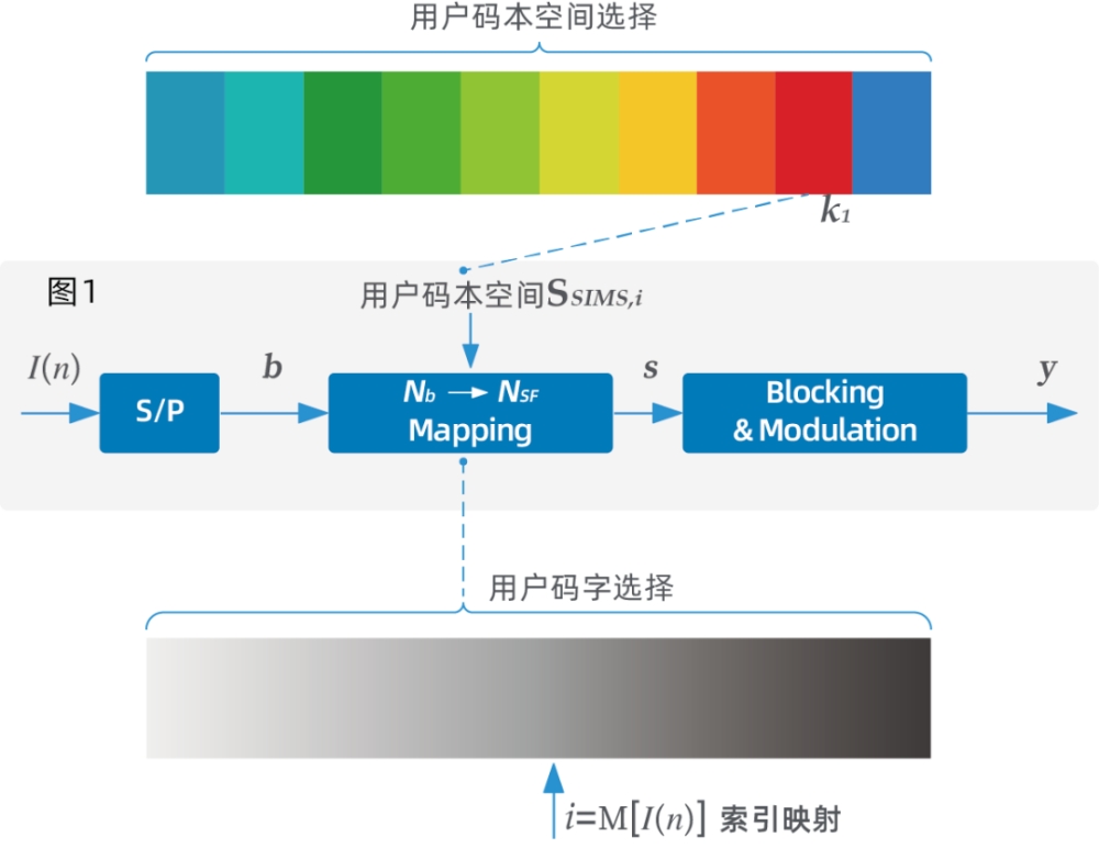 SIMS架构中,发射机由用户码本空间选择、扩频码字选择及恒模调制三部分组成,基于SIMS的统一LPWAN架构创新性地开拓了用户码本空间新维度。