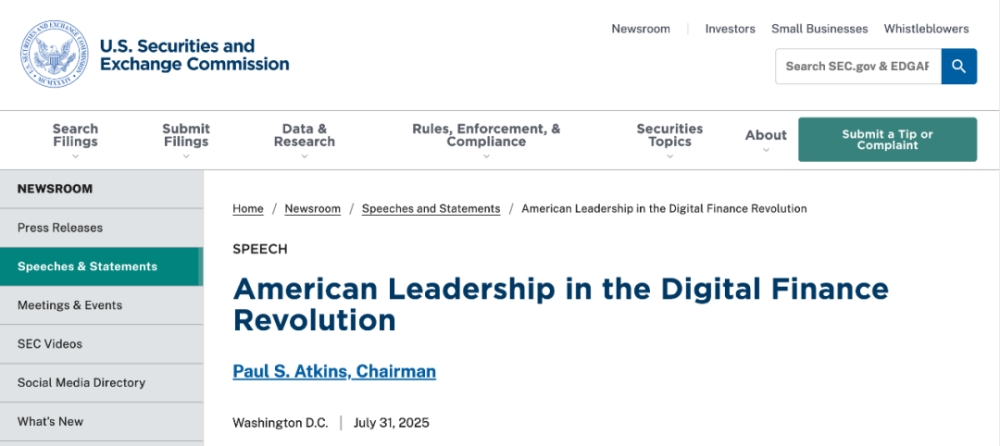 但2025年的变化是戏剧性的。新任主席Paul Atkins上任后,立即启动了Project Crypto计划,提出了“最小有效剂量”的监管哲学。在2025年9月的OECD演讲中,Atkins明确表示:“加密的时代已经到来,政策将不再通过临时的执法行动来制定,我们将提供清晰、可预测的规则,让创新者能够在美国蓬勃发展。”