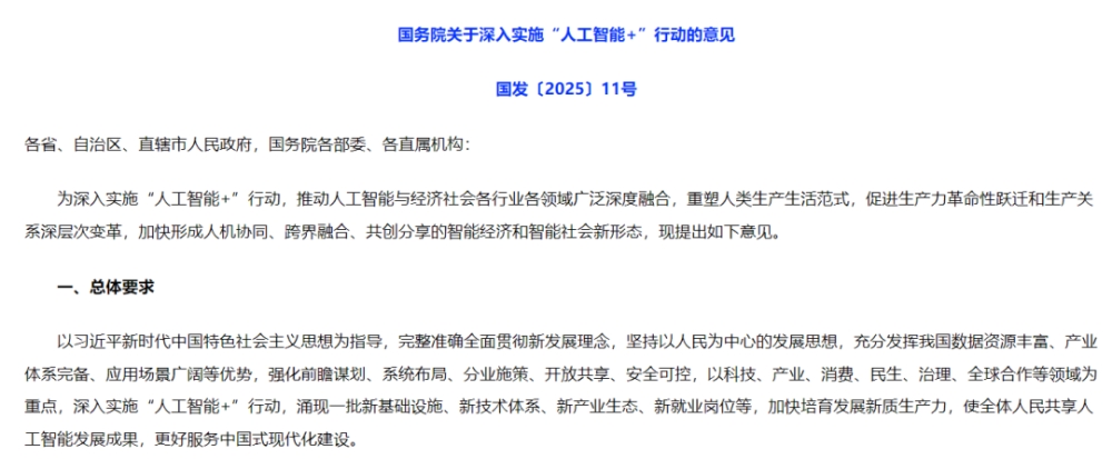 该意见将“模型、数据、算力、应用环境”等基础支撑与“产业、消费、民生、治理、全球合作”等重点领域联动起来,强调以真实场景牵引技术突破与价值创造的闭环建设。