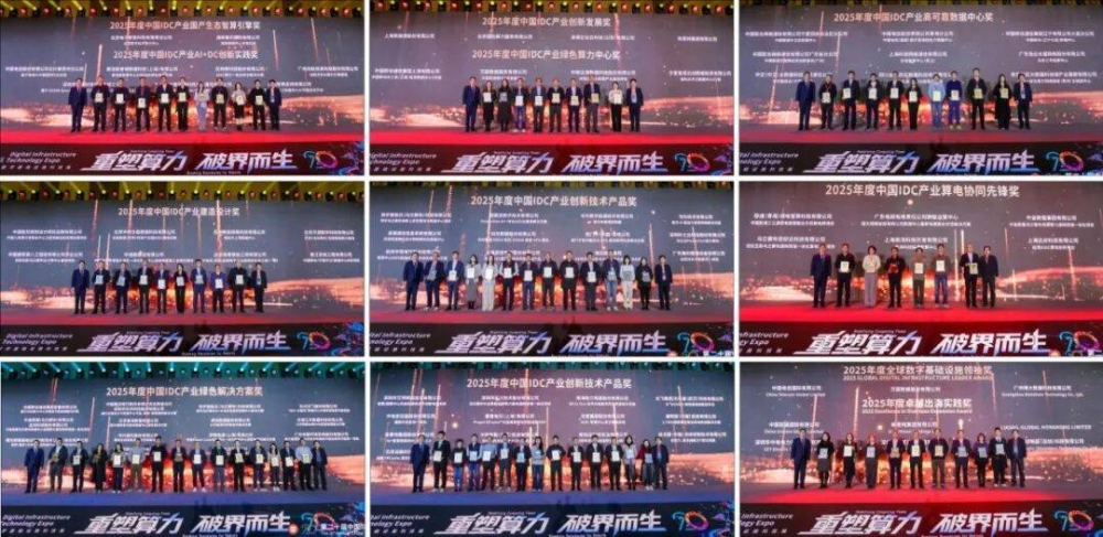 大会隆重举办了2025年度“中国IDC产业年度评选”颁奖典礼,表彰在过去一年中为算力产业发展作出卓越贡献的标杆企业与项目。本次评选设置了多个算力产业奖项,包括:2025年度中国IDC产业国产生态智算引擎奖、2025年度中国IDC产业AI+DC创新实践奖、2025年度中国IDC产业创新发展奖、2025年度中国IDC产业绿色算力中心奖、2025年度中国IDC产业高可靠数据中心奖、2025年度中国IDC产业建造设计奖、2025年度中国IDC产业创新技术产品奖、2025年度中国IDC产业算电协同先锋奖、2025年度中国IDC产业绿色解决方案奖、2025年度全球数字基础设施领袖奖、2025年度卓越出海实践奖等重要奖项。