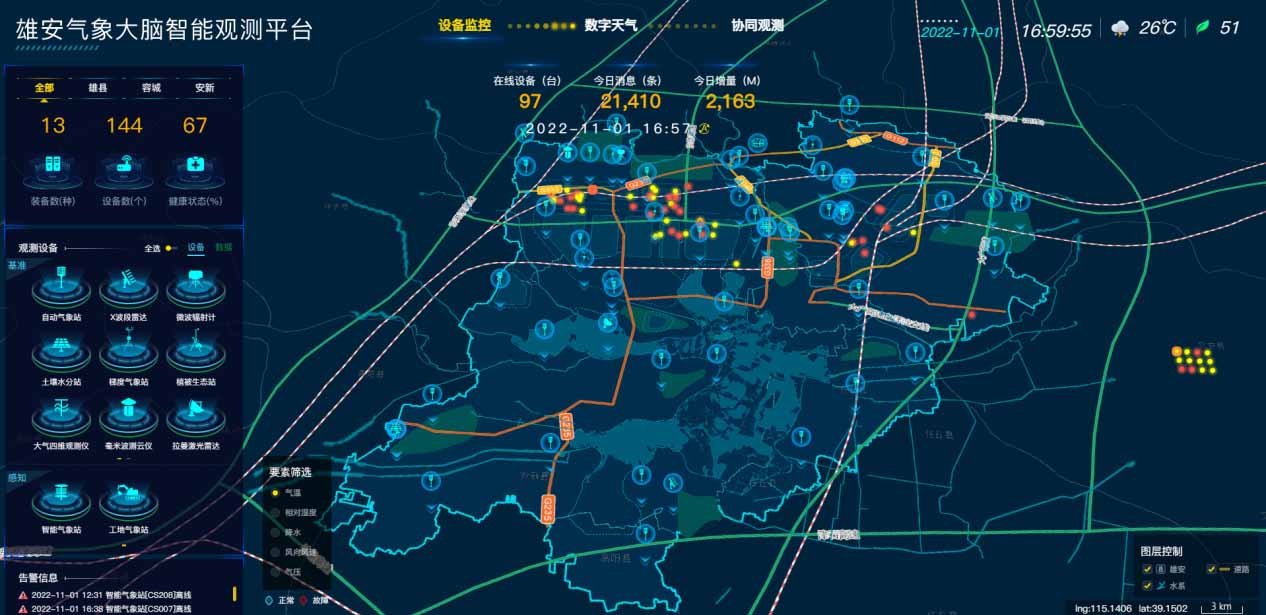 据雄安新区气象局工作人员介绍,雄安气象5G物联网平台依托了5G技术高速度、低延时、泛在网、低功耗、万物互联、重构安全6大特点,为泛在感知网、视频监测网、X波段雷达监测网、基准气象网高速度大流量低延迟的数据传输和高影响天气协同观测提供了基础。