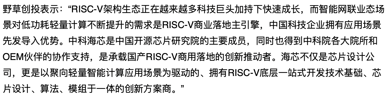 36氪获悉,近日国产RISC-V芯片研发商「中科海芯」宣布完成近亿元人民币Pre-A轮融资,由临芯投资、建发基金联合领投,野草创投、君子兰资本、东芯通信跟投。本轮资金将主要用于MCU控制器的量产、CPU芯片的研发投入,以及高端人才和行业领域专家的扩充。