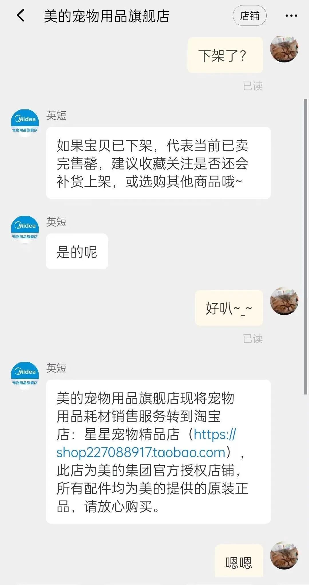 2022年5月,美的集团宣布优化宠物智能硬件业务,其在2020年由母品牌“美的”在天猫开设的宠物用品旗舰店也于日前下线,宠物用品销售服务也已移至官方授权店铺进行售卖;
