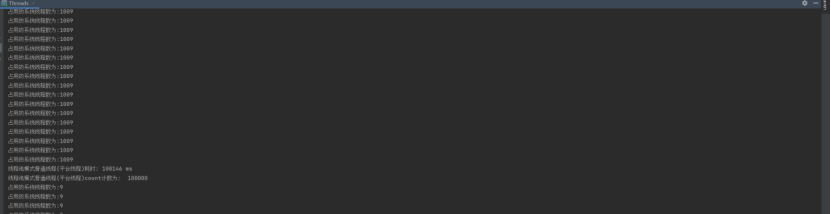 以下我将三种线程创建的方式来模拟高并发IO,并打印系统线程数,得到三种线程对处理10万累加计数的时长。