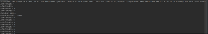 线程池模式1000普通线程(平台线程)count计数为: 100000