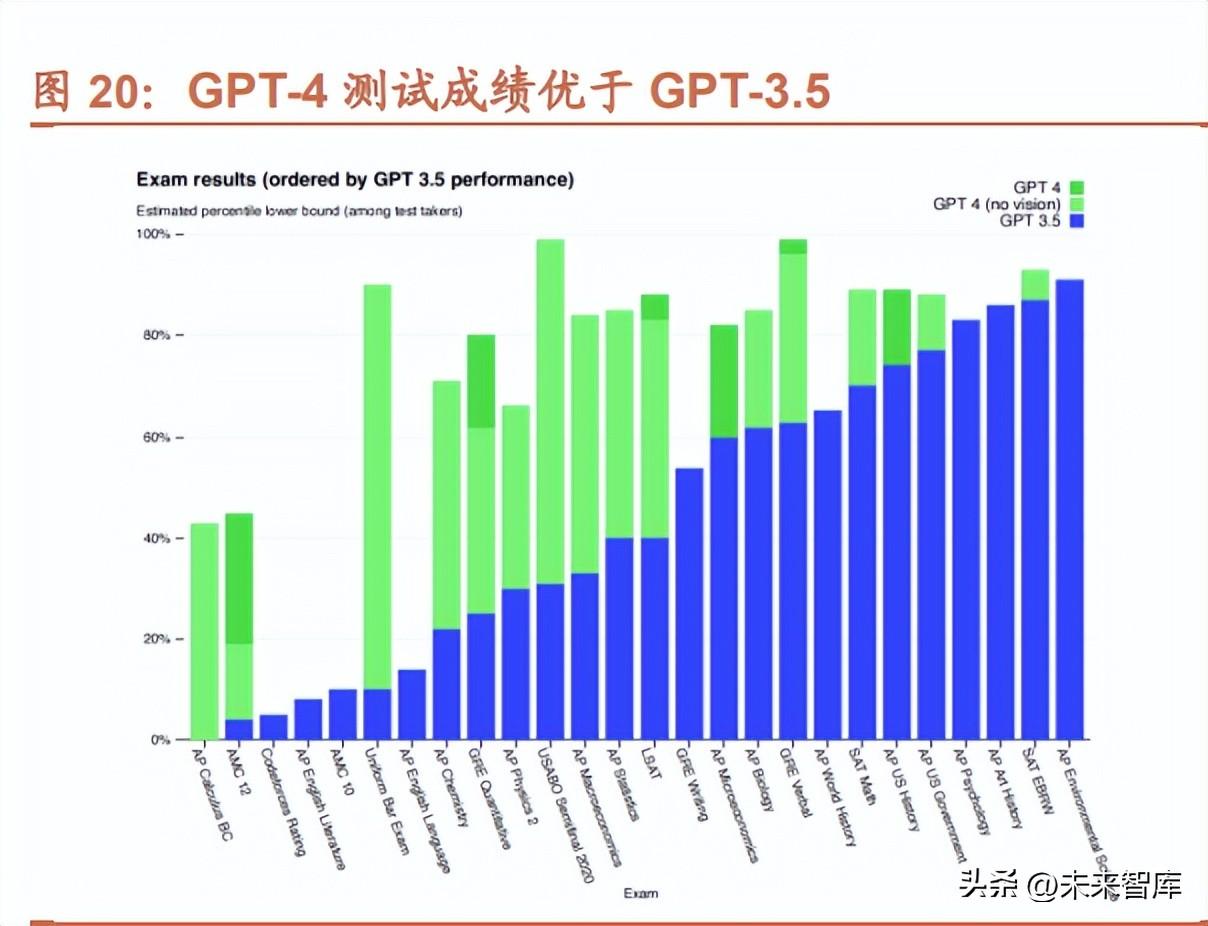 OpenAI 在 ChatGPT 成为爆款后又推出多模态大模型 GPT-4。3 月 14 日,OpenAI 公布多模态预训练大模型 GPT4,其在诸多方面进行了升级:1)输入端上限:GPT-4 文字输入限制提升至 2.5 万字,为 ChatGPT 的 8 倍左右;2) 多模态输入能力:能够接受文本、图像等形式的输入;3)高级推理能力:在各种专业和学术领域的基准测试中表现 出“人类水平”,多数成绩优于 GPT-3.5。