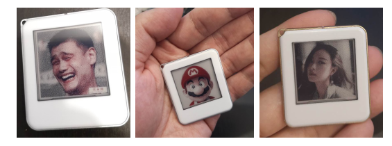 而在国内,也有一家企业——启纬智芯提出了基于射频能量采集技术实现电子产品“无源化”、“无电池化”的方案。他们面向消费类市场推出了一款无源小吊牌产品,是传统吊牌和挂饰电子化、信息化后的形态。当用户想要将自己创作的作品或者任意图片“投射”到这款小吊牌的屏幕上时,用户通过NFC就能向其供电,然后利用手机APP连接操作,随后将物件靠近手机,小屏幕上就会显示出投影的照片。