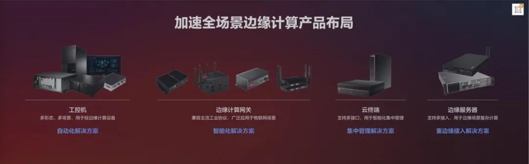 在硬件层面,联想全局部署边缘计算产品,拥有强大的硬件实力,其产品包括高扩展性4U工控机、工业一体机和嵌入式工控机;具备低功耗、低成本、无风扇设计的边缘计算网关;具备超小机身、多接口设计、灵活安装部署的超能云终端;还有面向重边缘计算场景,紧凑型的专用边缘服务器系列等。