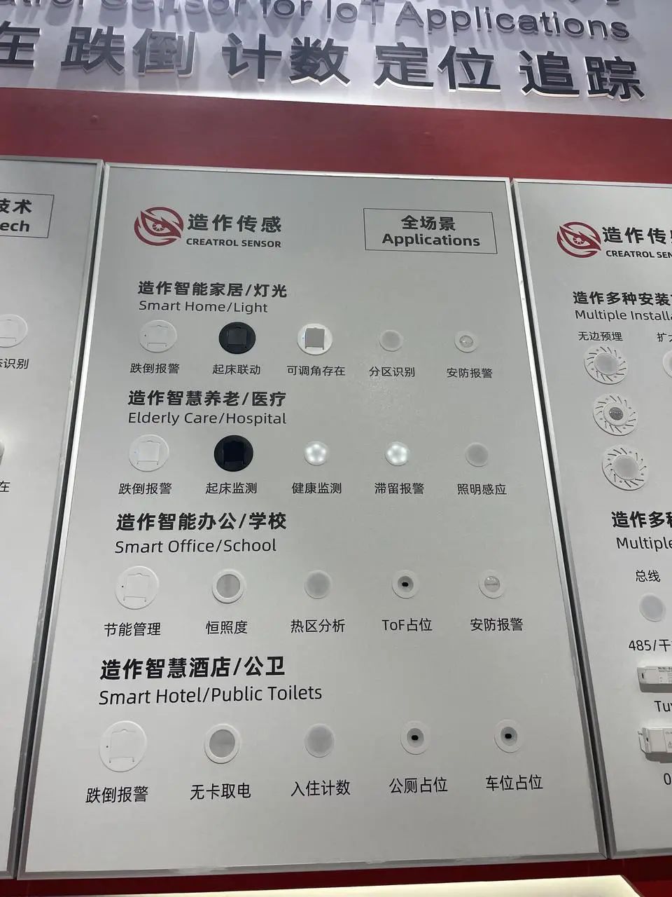 在场景方面,造作传感面向智能家居、智慧养老/医疗、智能办公/学校、智慧酒店/公卫等均推出了适用于不同功能的毫米波雷达产品。