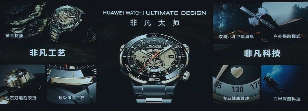 然后,余承东画风一转,开始介绍华为的极致工艺和极致创新:非晶锆合金、鹰翼铰链、昆仑玻璃、陶瓷、ai慧眼识物、卫星通信、物理可变光圈 、百米防水等等,引出了华为的超高端品牌——非凡大师,并邀请刘德华作为品牌大使。