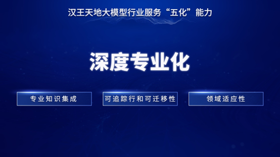为满足行业内容专业化应用要求,汉王天地大模型利用行业数据注入二次预训练、定向任务精调、知识图谱等专业技术,实现了行业内容可追踪性和可迁移性,以及更好的领域适应性能力。