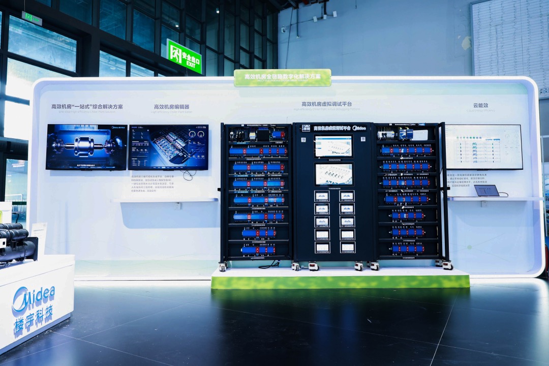 现场展示的高效机房全链路数字化解决方案,以高效机房+智慧末端+智能环控控制系统的先进解决方案,通过打造高效机房编辑器、虚拟调试平台、云能效平台,实现节能和最佳效率运行。该方案,目前已在北京鼎好DH3、苏州地铁6号线等落地应用。以北京鼎好DH3为例,从高效制冷机房到高效空调末端一站式,以绿色低碳升级驱动数智化管理和低碳化运营,实现制冷机房全面综合能效EER≥5.5,相当于常规系统年节约电量约100万度,减少排放800tCO₂。