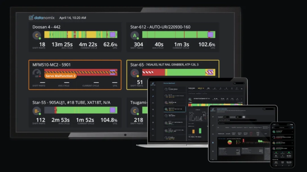 Datanomix 曾推出了号称“业界首个全自动、即插即用的生产和运营监控解决方案”。相比于竞品解决方案需要输入数据,Datanomix 软件对正常运行时间、计划外停机时间、周期时间、程序和工具的强大分析无需任何操作输入,一切都是自动化的。