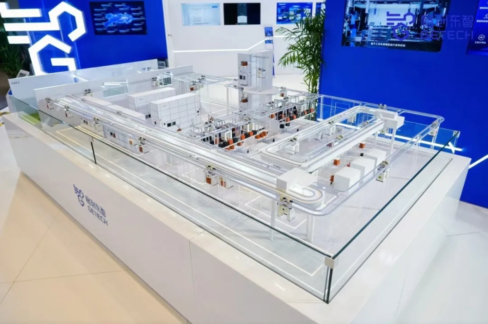 基于对泛半导体行业know how的深厚积累,格创东智多年来沉淀了大量自研的工业软件,并于过去两年布局智能装备,通过AI+CIM+AMHS软硬融合赋能半导体。在展厅的正前方,格创东智向外展出了面向半导体前后道厂内AMHS解决方案,引起了数千名观众的驻足与咨询。该解决方案分为物料传送、物料存储、OHT天车轨道设计等多个环节,在设备层、控制层、控制层均有定制化咨询规划与部署,格创东智具备MES、RTD、OHTC等自主系统软件;通过自身软硬件自主开发及整合能力,100%满足客户端整厂的全套AMHS解决方案内容。其中2.5代天车直行跑速可达5.3m/s,定位精度控制在±0.5mm,搬运振动值≤0.5G,这些精度值比肩国际标准,体现了公司对半导体服务质量的严苛要求。目前,AMHS解决方案已经在多个项目中成功应用。例如,在某军工单位的8吋厂中,OHT天车系统帮其工艺车间实现了全自动搬运,提升生产良率15%,提高产能25%,人力需求降低80%。