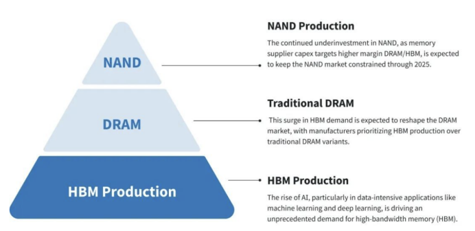 根据国际知名调研机构TechInsights发布的《2025存储器市场展望》,存储器市场包括DRAM和NAND,预计在2025年将实现显著增长,这主要得益于人工智能(AI)及相关技术的加速采用。报告中同样表示随着边缘AI变得更加普及,将推动对适合这些新功能的内存解决方案的需求。
