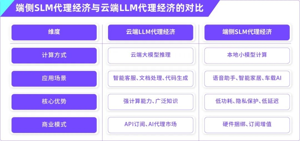 相比LLM主要依赖云端API访问,SLM代理经济的核心驱动力在于以下几点: