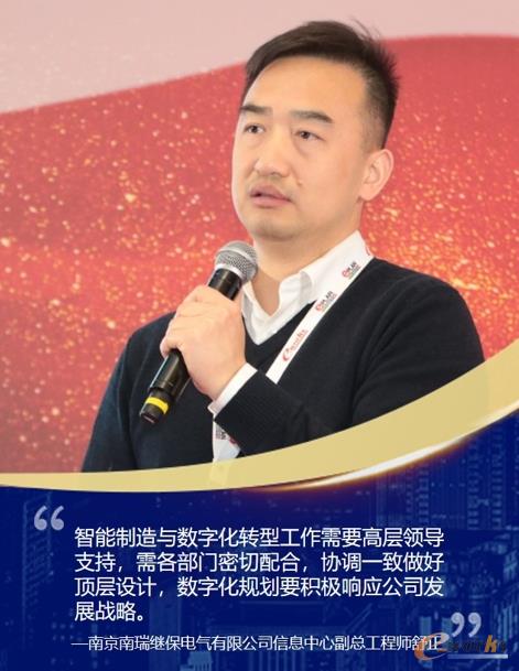 南京南瑞继保电气有限公司信息中心副总工程师舒正分享了电力装备行业智能制造案例。他介绍了南瑞继保生产运营管理痛点,并以此制定了全面升级生产设备、新型能力规划等战略目标,实现了从产品研发到订单交付全业务过程的生产全要素信息化、数字化,全面提升了产品协同制造和一体化高品质交付能力。