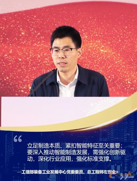 工业和信息化部装备工业发展中心总工程师左世全为本次大会致辞。左世全指出,随着人工智能、5G大数据等技术的快速发展,智能制造正向更大的范围、更深的程度、更高的层次演进。我们要立足制造本质、紧扣智能特征、深入推动智能制造发展。工信部装备中心也将加强与各方的交流合作,助力制造业向高端化、绿色化、智能化迈进。